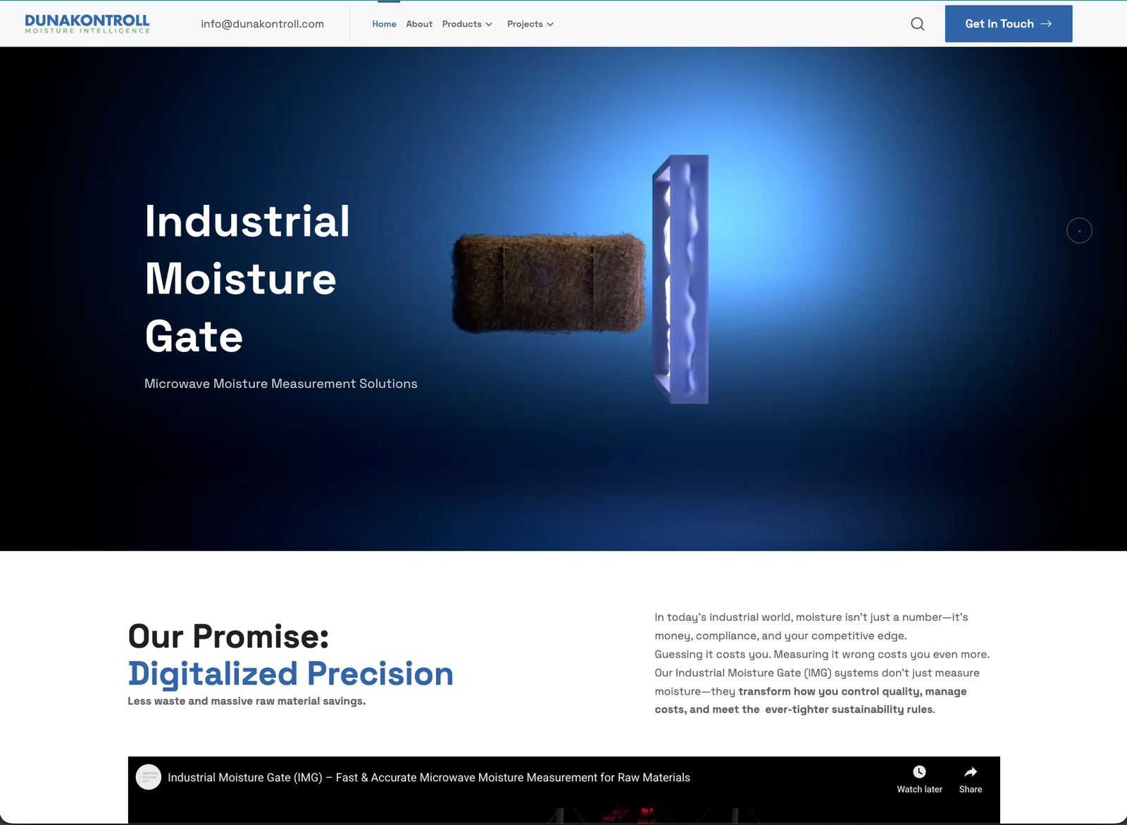 Dunakontroll entwickelt und produziert mikrowellenbasierte, berührungslose Feuchtemesssysteme für Schüttgüter.