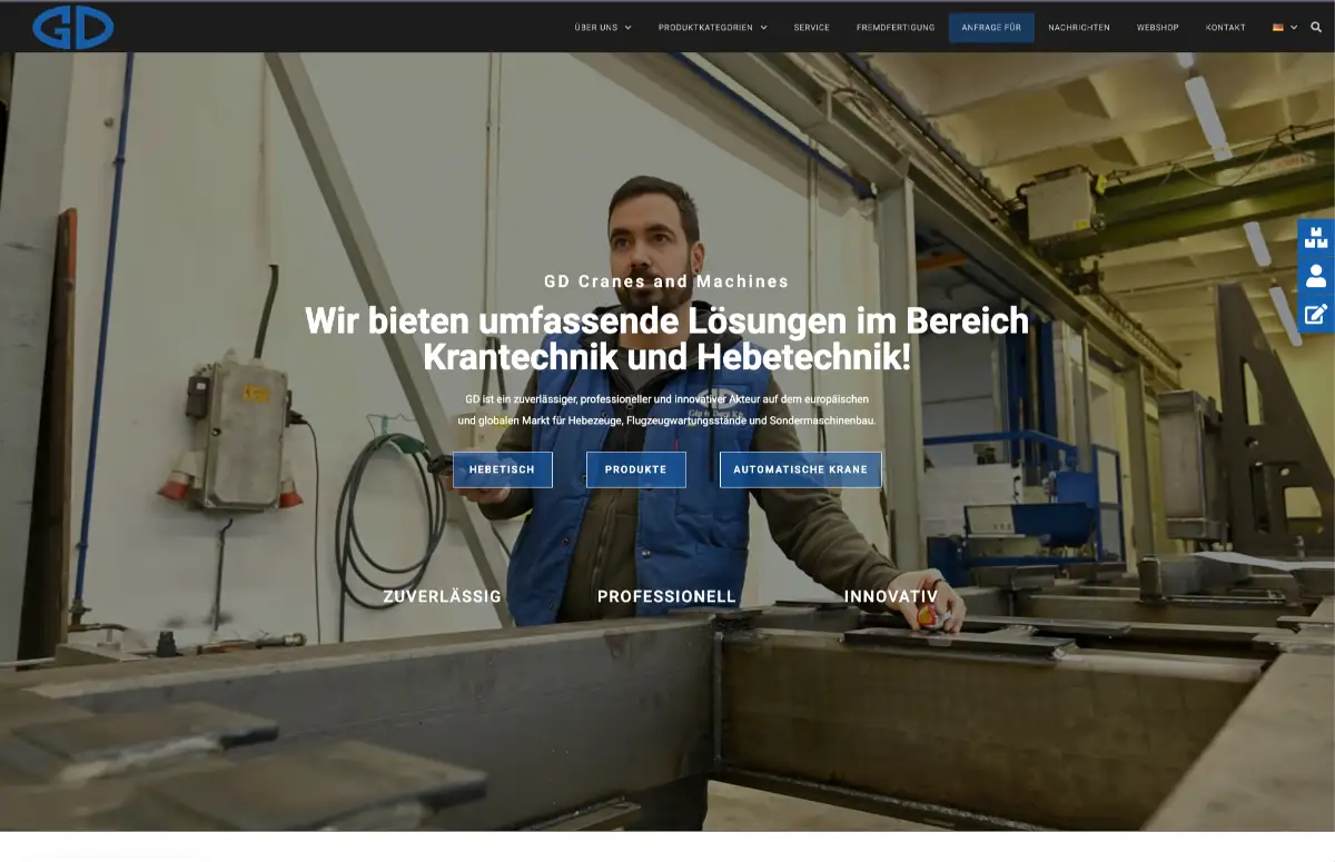 GD Cranes and Machines bietet maßgeschneiderte Kran- und Hebelösungen an, einschließlich Planung, Fertigung und Service für industrielle Anwendungen.